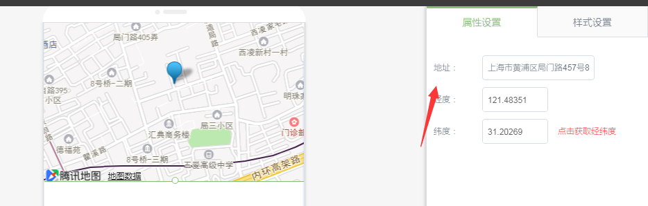 ②.左侧属性设置输入地址,或者直接输入经纬度